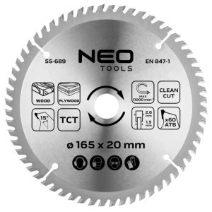 Tarcza do pilarki, zagłębiarki, widiowa, 165 x 1.5 x 2.6 x 20 mm, 60 zębów