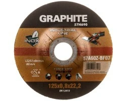 Tarcza do cięcia metalu GRAPHITE (nr ref. 57H690) o średnicy zewnętrznej 125 mm, dzięki zaawansowanej konstrukcji i redukcji grubości pozwala na dwukrotne zwiększenie prędkości cięcia. Zapewnia wysoki poziom bezpieczeństwa pracy dzięki zgodności produktu z normą EN12413.