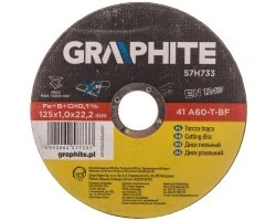 Tarcza do cięcia metalu GRAPHITE (nr ref. 57H733) o średnicy zewnętrznej 125 mm, dzięki zaawansowanej konstrukcji i redukcji grubości pozwala znacząco skrócić czas cięcia. Przeznaczona głównie do cięcia stali nierdzewnej dzięki ograniczonej zawartości siarki, chloru i żelaza. Zapewnia wysoki poziom bezpieczeństwa pracy dzięki zgodności produktu z normą EN12413.