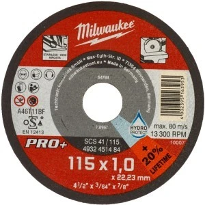 Tarcza do cięcia metalu stali o średnicy 115mm renomowanej firmy Milwaukee profesjonalnej jakości, niezawierająca żelaza i siarki przeznaczona jest do cięcia wszystkich stali.