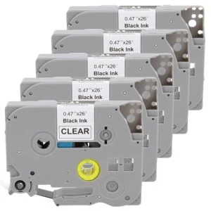 Taśma 5x Tze‑131 do drukarki Brother 12mm 8m przeźroczysta taśma czarny nadruk /5szt./