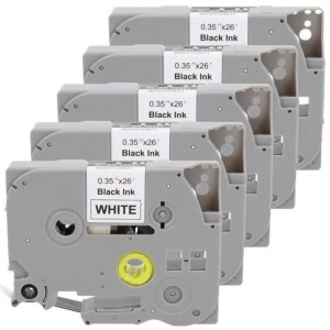 Taśma 5x Tze‑221 do drukarki Brother 9mm 8m biała taśma czarny nadruk /5szt./