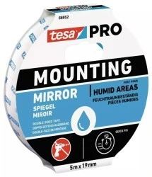 Taśma tesa PRO Mounting Mirror jest idealnym rozwiązaniem dla fachowców wykonujących prace dla klientów, którzy nie pozwalają na wiercenie dziur wewnątrz pomieszczeń. Taśma ta zapewnia niezawodne łączenie nawet w wilgotnych pomieszczeniach. Tę wytrzymałą taśmę można stosować na gładkich powierzchniach takich jak płytki i do mocowania płaskich przedmiotów o grubości do 4 mm takich jak lustra. Z tą dwustronną taśmą w skrzynce na narzędzia, spełnisz każde życzenie klienta dotyczące montażu wewnątrz pomieszczeń.