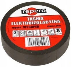 Profesjonalna taśma izolacyjna Repero 701 Super jest uniwersalną, super elastyczną, samogasnącą taśmą PCV o mocnej powłoce klejącej wykonanej na bazie kauczuku. Została zaprojektowana do izolowania złączy kablowych, wiązkowania zwojów kablowych oraz zabezpieczania przed wilgocią, promieniowaniem UV i ekstremalnie niskimi temperaturami (do -18 °C).