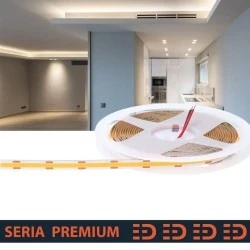 Wysokiej jakości taśma LED wykonana w technologii COB, zapewniająca jednolitą, ciągłą linię światła bez widocznych punktów LED. Idealna do zastosowań, w których estetyka świecenia i komfort wizualny mają kluczowe znaczenie.