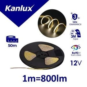 Taśma LED, Długość [mm]: 50000, Głębokość [mm]: 2, Szerokość [mm]: 8, Wysokość [mm]: 50000, Barwa światła: chłodnobiała, Ilość cykli wł/wył: ≥30000, Jednolitość barw [SDCM]: 5, Klasa ochronności przed porażeniem elektrycznym: III, Miejsce zastosowania: wewnątrz, Minimalna odległość od oświetlanego obiektu: 0,1m, Moc znamionowa [W]: 1m = 8, Napięcie znamionowe [V]: 12 DC, Rodzaj diody: LED COB, Rodzaj przyłącza: wolne końce przewodów, Stopień IP: 00, Strumień świetlny oprawy [lm]: 1m = 800, Temperatura barwowa [K]: 6500, Współczynnik oddawania barw Ra: 90, Zakres temperatury otoczenia, na którą może być narażony wyrób [°C]: 5÷25, Zawartość rtęci: nie, Znamionowa trwałość lampy [h]: 30000, Możliwość cięcia pasków LED na segmenty [cm]: 2.5, Zastosowana technologia oświetleniowa: LED, Bezkierunkowe lub kierunkowe źródło światła: NDLS, Źródło światła zasilane lub niezasilane napięciem sieciowym: NMLS, Połączone źródło światła (CLS): nie, Źródło światła z możliwością zmiany barwy światła: nie, Źródło światła o wysokiej luminancji: nie, Osłona przeciwolśnieniowa: nie, Funkcja ściemniania: jedynie w przypadku określonych ściemniaczy, Zużycie energii w trybie włączenia (kWh/1000h): 0,5m=4, Klasa efektywności energetycznej: F, Użyteczny strumień świetlny źródła światła Φuse [lm]: 0,5m=400, Użyteczny strumień świetlny źródła światła Φuse [lm]: w kuli (360°), Moc w trybie włączenia Pon [W]: 0,5m = 4, Współczynnik zachowania strumienia świetlnego: 0.96, Deklaracja równoważności mocy [W]: 0,5m = 35, Współczynnik trwałości: 0.9, Współrzędne chromatyczności (x): 0.313, Współrzędne chromatyczności (y): 0.337, EPRELID: 2203985.
