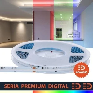 Taśma LED Premium COB Digital RGB+ z białą barwą światła została zaprojektowana z myślą o zaawansowanych aplikacjach, gdzie precyzja oświetlenia i elastyczność w doborze barw mają kluczowe znaczenie. Taśma oferuje płynne przejścia kolorystyczne i precyzyjne sterowanie, zapewniając wyjątkową równomierność światła i intensywność. Barwa biała, wraz z możliwością zmiany kolorów, sprawia, że taśma doskonale sprawdzi się w projektach architektonicznych, reklamowych, meblarskich oraz dekoracyjnych. Charakteryzuje się wysoką wydajnością oraz długotrwałą niezawodnością.