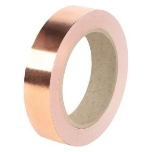 35 Micron Folia miedziana pokryta elektrycznie Przewodzące tworzywo termoutwardzalne na bazie rozpuszczalnika klej akrylowy dostarczany na wymiennym silikon towarzystwami.Przewodzące klej akrylowy Dobre wysokie i niskie temperatury Może być łatwo lutowane Łatwe odwijanie