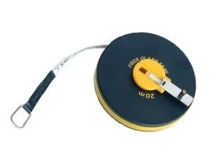 Taśma miernicza wyposażona w mechanizm z korbką ułatwiający zwijanie taśmy Taśma miernicza z włókna szklanego w białym kolorze jest dobrze widoczna podczas pomiarów Specjalny szeroki zaczep mierniczy ułatwia dokonanie pomiaru