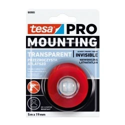 Do mocowania płaskich przedmiotów zarówno wewnątrz, jak i na zewnątrz pomieszczeń: Do zastosowań na powierzchniach takich jak szkło, płytki, wykończone drewno czy tworzywa sztuczne różnego rodzaju. Ta krystalicznie przezroczysta i nadzwyczajnie cienka taśma jest odporna na działanie temperatury do 100°C i nie ulega uszkodzeniu pod wpływem działania wilgoci, (niektórych) substancji chemicznych, środków zmiękczających czy promieni UV. Pasek taśmy o długości 10 cm jest w stanie utrzymać ciężar do 2 kg. Idealne rozwiązanie do mocowania na przezroczystych i litych powierzchniach.