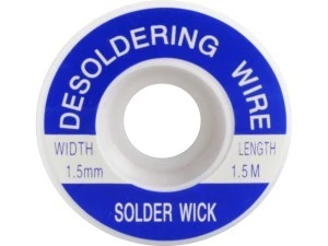 Taśma rozlutownicza służąca do odciągania nadmiaru cyny podczas lutowania. Gęsty splot ułatwia użytkowanie taśmy.