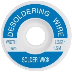 Taśma rozlutownicza o szerokości 1 mm i długości 1,5 m służy do efektywnego usuwania nadmiaru cyny podczas lutowania.