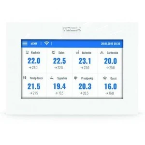 Bezprzewodowy regulator ma za zadanie utrzymać na stałym poziomie temperaturę w pomieszczeniach przy pomocy siłowników dla 16 różnych stref grzewczych.