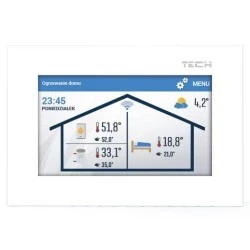 Zastosowanie regulatora pokojowego zapewnia inteligentne utrzymywanie zadanej temperatury pomieszczenia poprzez automatyczne proporcjonalne regulowanie zadanej temperatury kotła. Regulator ma możliwość dostosowywania przez użytkownika parametrów algorytmu sterowania. Urządzenie jest kompatybilne z protokołem OpenTherm/ plus (OT+) i OpenTherm/lite (OT-). Duży, czytelny, kolorowy wyświetlacz dotykowy pozwala na bardzo wygodną obsługę regulatora i modulację jego parametrów. Łatwy montaż na ścianie, estetyka urządzenia, przedni panel dotykowy, a także jego niewygórowana cena stanowią kolejne zalety regulatora. Komunikacja WiFi - nadzór przez aplikację e-Modul. W zestawie bezprzewodowy czujnik C-mini.