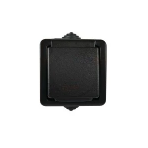 Gniazdo zasilające pojedyncze francuskie z ochroną styków natynkowe, IP54, kolor czarny.