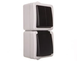 TEKNO Łącznik jednobiegunowy + Gniazdo z przesłoną styków pionowy 10AX/16A 250V szare IP54 25361