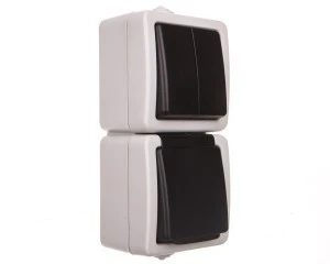 TEKNO Łącznik świecznikowy + Gniazdo pionowe z przesłoną styków śrubowe 10AX/16A 250V szare IP54 25362