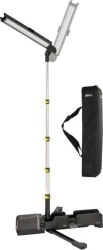 - Reflektor LED zasilana akumulatorem jest elastycznie regulowana dzięki stabilnemu statywowi i teleskopowi o regulowanej wysokości (możliwość przedłużenia do 1,40 m) - odchylana i obracana głowica reflektora zapewnia doskonałe oświetlenie terenu