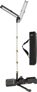 - Akumulatorowa lampa robocza LED z wysuwanym teleskopem i pochylaną głowicą reflektora, kompatybilna z różnymi akumulatorami 18V (różne klasy Ah) 7 producentów elektronarzędzi: Bosch Professional, Dewalt, Festool, Flex, Makita, Metabo CAS i Milwaukee