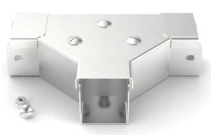 Trójnik równy/przednia pokrywa lid. Lid łącznika jest przymocowana za pomocą środkowych mocowań 90° zabezpiecza pokrywkę lid W komplecie znajdują się szybko zdejmowane pokrywy, co ułatwia dostęp Klasa IP4X.