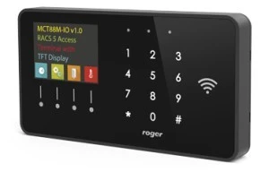 MCT88M-IO to wysokiej jakości terminal dostępu wykorzystywany w systemie kontroli dostępu i automatyki budynkowej RACS 5. Terminal jest wyposażony w kolorowy wyświetlacz matrycowy, klawiaturę dotykową z 4 klawiszami funkcyjnymi oraz czytnik MIFARE. Urządzenie można wykorzystać również jako terminal rejestracji czasu pracy