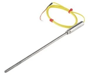 RS Pro Typ K Termopary izolowane mineralnie ANSI z uszczelnieniem PIT i przewodem 1 m. Od RS Pro - zakres czujników temperatury termopary typu K zgodnych z ANSI MC96.1. Normy. Czujniki lub sondy mają Durable kształt i są wyposażone w obudowę 310 sond ze stali nierdzewnej oraz przewód teflonowy PFA o długości 1 m. Elastyczna osłona z izolacją mineralną może być wygięta i uformowana, aby pasowała do szerokiej gamy zastosowań. Termopara posiada izolowany, gorący łącznik, redukujący zakłócenia elektryczne i gładką uszczelkę zbiornika o temperaturze 200°C. Jak działa termopara?. Termopara jest czujnikiem używanym do pomiaru temperatury w różnych procesach i składa się z dwóch części stalowych wykonanych z różnych metali połączonych ze sobą na ich końcach, tworząc dwa złącza. Złącze gorące lub pomiarowe jest podłączone do korpusu, którego temperatura ma być mierzona. Złącze zimnego przyłącza lub złącze odniesienia jest podłączone do korpusu o znanej temperaturze. Gdy złącze pomiarowe jest umieszczone na coś ciepłego, występuje różnica napięcia lub potencjału między tym a punktem referencyjnym. Napięcie to można następnie przekształcić w pomiar temperatury przy użyciu tabel odniesienia termopary. Proces ten znany jest również jako efekt Seebeck'a. Co to jest skrzyżowanie izolowane?. Izolowane lub nieuziemione złącze jest miejscem, gdzie przewody termopary są spawane i całkowicie zakryte, ale izolowane od zewnętrznej osłony ochronnej, często przez zastosowanie izolacji mineralnej. Zaletą tego rozwiązania jest ograniczenie zakłóceń elektrycznych i stabilny odczyt. Co to jest hermetyczna izolacja?. Izolacja mineralna służy do izolowania przewodów termopary od siebie oraz metalowej osłony próbnika, która je otacza. Osłona jest wypełniona proszkiem tlenku magnezu o wysokiej wytrzymałości, który zapobiega stykaniu się przewodów ze sobą, z wyjątkiem stałego połączenia. Duża gęstość proszku mineralnego umożliwia termoparze szybkie działanie Rapid, ponieważ umożliwia szybkie przenoszenie ciepła pomiędzy przewodem i osłoną. Izolacja mineralna pomaga również chronić przewód termopary przed uszkodzeniem środowiskowym, w tym korozją, zapobiega zakłóceniom elektrycznym i pozwala na elastyczność kabla przy zachowaniu jego wytrzymałości mechanicznej. Charakterystyka i zalety. Durable 310 Osłona z sondy ze stali nierdzewnej do ochrony przed korozją i utlenianiem Zgodne ze standardami ANSI MC96.1 Bogata izolacja mineralna zapewnia elastyczność i trwałość Izolowane złącze gorące do redukcji zakłóceń elektrycznych Przewód teflonowy PFA odporny na oleje, kwas, płyny oraz dobrą wytrzymałość mechaniczną i elastyczność Zakres temperatury głowicy do +1100°C. Zastosowania. Termopary typu K (niklowo-chromowe/niklowo-aluminiowe) są najczęściej spotykanym typem termopary i są dokładne i elastyczne, o szerokim zakresie temperatur. Typowe zastosowania dla tych sond termopary typu K z izolacją mineralną obejmują wymienniki ciepła, elektrownie, piece do wypalania i cementu, piece do obróbki cieplnej i wyżarzania, termostaty, termometry żywnościowe, diagnostykę pojazdu i laboratoria