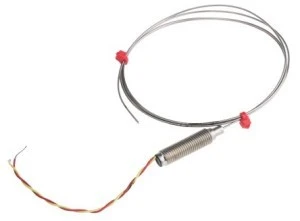 Typ K Ind. Związki chromosowane mineralnie z kloszami gwintowanymi i ożaglami. Termopary izolowane wg normy ANSI z gwintowanym zbiornikiem i ogonami. 310 Oliwa ze stali nierdzewnej lub osłona 600 z stopu inconel® Bardzo giętką osłonę można wyginać/formować w celu dopasowania do różnych zastosowań i procesów. Izolowane złącze gorące Zakres temperatur sondy: Od -40°C do +1100°C. M8 x 1,0 mm uszczelnienie potencjometru z gwintem o małym skoku (200°C) 100 mm, skrętka dwużyłowa PFA 7/0,2 mm, kolor kodowany zgodnie z ANSI MC96.1