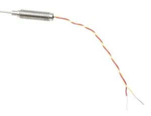 Typ K Ind. Związki chromosowane mineralnie z kloszami gwintowanymi i ożaglami. Termopary izolowane wg normy ANSI z gwintowanym zbiornikiem i ogonami. 310 Oliwa ze stali nierdzewnej lub osłona 600 z stopu inconel® Bardzo giętką osłonę można wyginać/formować w celu dopasowania do różnych zastosowań i procesów. Izolowane złącze gorące Zakres temperatur sondy: Od -40°C do +1100°C. M8 x 1,0 mm uszczelnienie potencjometru z gwintem o małym skoku (200°C) 100 mm, skrętka dwużyłowa PFA 7/0,2 mm, kolor kodowany zgodnie z ANSI MC96.1