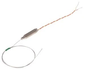 Typ K Ind. Związki chromosowane mineralnie z kloszami gwintowanymi i ożaglami. Termopary izolowane wg normy ANSI z gwintowanym zbiornikiem i ogonami. 310 Oliwa ze stali nierdzewnej lub osłona 600 z stopu inconel® Bardzo giętką osłonę można wyginać/formować w celu dopasowania do różnych zastosowań i procesów. Izolowane złącze gorące Zakres temperatur sondy: Od -40°C do +1100°C. M8 x 1,0 mm uszczelnienie potencjometru z gwintem o małym skoku (200°C) 100 mm, skrętka dwużyłowa PFA 7/0,2 mm, kolor kodowany zgodnie z ANSI MC96.1