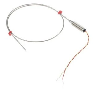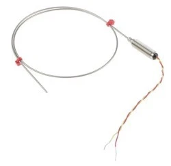 Typ K Ind. Związki chromosowane mineralnie z kloszami gwintowanymi i ożaglami. Termopary izolowane wg normy ANSI z gwintowanym zbiornikiem i ogonami. 310 Oliwa ze stali nierdzewnej lub osłona 600 z stopu inconel® Bardzo giętką osłonę można wyginać/formować w celu dopasowania do różnych zastosowań i procesów. Izolowane złącze gorące Zakres temperatur sondy: Od -40°C do +1100°C. M8 x 1,0 mm uszczelnienie potencjometru z gwintem o małym skoku (200°C) 100 mm, skrętka dwużyłowa PFA 7/0,2 mm, kolor kodowany zgodnie z ANSI MC96.1
