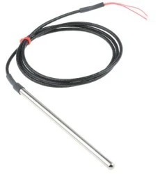 Próbnik PRT RS Pro ogólnego przeznaczenia 4-żyłowy Pt100 z ekranowanym przewodem teflonowym. Od RS Pro - wysokiej jakości i niezawodny czujnik pomiarowy Pt100 PRT (termometr o rezystancji platynowej) lub RTD (detektor temperatury oporności). Sonda RTD posiada solidną konstrukcję z elementem czujnikowym umieszczonym w sztywnej osłonie ze stali nierdzewnej 316. Przewody są odporne na Durable i elastyczne, ekranowane pod kątem zabezpieczenia przed zakłóceniami elektromagnetycznymi. Ten platynowy termometr rezystancyjny umożliwia dokładny i niezawodny pomiar temperatury w szerokim zakresie zastosowań. Co to jest BRT?. RTD jest typem czujnika temperatury w oparciu o zależność między metalami a temperaturą. Wraz ze wzrostem temperatury metalu oporność na przepływ prądu elektrycznego. Oporność ta może być mierzona i przekształcana na odczyt temperatury. W Pt100 RTD "Pt" oznacza platynę (drut platynowy lub folia), a "100" oznacza, że czujnik temperatury ma oporność 100 omów przy 0°C. Platyna jest najbardziej niezawodnym metalem ze względu na jego liniową odporność na temperaturę w dużym zakresie temperatur. Co to jest sonda Pt100?. Sonda Pt100 jest najbardziej wytrzymałą formą badań i rozwoju technologicznego. Element czujnika temperatury Pt100 jest zamontowany wewnątrz metalowej osłony lub sondy. Zabezpiecza to przed uszkodzeniem w otaczającym środowisku podczas wprowadzania go do procesu pomiaru. Drugi koniec sondy zakończony jest izolowanym przewodem składającym się z 4-żyłowych ogonów, które są podłączone do urządzenia do pomiaru temperatury. Charakterystyka i zalety. Element czujnikowy o wysokiej stabilności o dokładności IEC 60751 Klasa B dokładność/tolerancja Zakres pomiaru temperatury od -50 do +250°C. 4 przewody odprowadzeń zapewniają dokładne odczyty Odprow. Podłączone do dowolnego 2 3 lub 4 przewodów PT100 Sztywna osłona ze stali nierdzewnej odporna na korozję, chroniąca element czujnikowy Elastyczna izolacja teflonowa zapewnia izolację termiczną i elektryczną, odporność na uderzenia i chroni przed wilgocią, korozją i substancjami ściernymi nawet w ekstremalnych temperaturach Zaekranowany kabel chroniący przed zakłóceniami elektromagnetycznymi. Zastosowania. Czujniki PRT o solidnej konstrukcji Pt100 są idealne do zastosowań przemysłowych w wielu zastosowaniach, w tym:. Klimatyzacja i chłodzenie Przemysł chemiczny Przetwarzanie tworzyw sztucznych Piece i kratki Pomiar temperatury powietrza, gazu i płynu Pomiar temperatury gazów spalinowych Przetwarzanie żywności Laboratoria. Często zadawane pytania. Jak działa czujnik temperatury PRT?. Czujnik temperatury PRT działa, umieszczając element czujnika (lub koniec procesu) w urządzeniu lub procesie wymagającym pomiaru temperatury. Ponieważ temperatura platynowego termometru rezystancyjnego zwiększa jego odporność na przepływ energii elektrycznej. Przy każdym wzroście temperatury opór elektryczny zmienia się również o ustalony stosunek, zwany współczynnikiem temperatury. Dla platyny stosunek wynosi 0,00385 om/om/°C, co oznacza dla Pt100 o oporności 100 omów wzrost oporności na stopień temperatury wyniesie 0,385 om. Całkowity odczyt oporności można zatem zmierzyć i przekształcić w temperaturę. W jaki sposób mierzy się rezystancję?. Oporność generowana przez czujnik temperatury jest mierzona poprzez przepływ prądu przez jeden z przewodów w celu uzyskania napięcia. Napięcie to jest następnie mierzone za pomocą odpowiedniego mostu lub woltomierza, a rezystancja obliczana w omach przy użyciu parametru Om Act (R=V/I). Gdy znany jest opór, można go przekształcić w odczyt temperatury za pomocą równania kalibracji lub tabeli Pt100. Do przewodów sondy można również podłączyć urządzenie do pomiaru temperatury lub kalibrator, który automatycznie konwertuje zmierzoną rezystancję na odczyt temperatury.