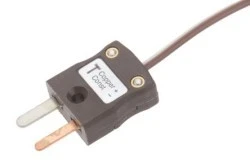 Typ K lub T Wystawione termopary skrzyżowań. Termopary izolacyjne PTFE o szybkiej reakcji, wykonane z unikalnej konstrukcji przewodu z jednym strzałem, która zapewnia izolację gazową, parą i wodoodporną wzdłuż kabla. Specjalnie przystosowany do monitorowania temperatury części badanych w autoklawie i w przemyśle lotniczym. Przewodnik o średnicy 1/0,376 mm Zakres roboczy od -75 °C do +250 °C. Konstrukcja z wykorzystaniem kabli jednostrzałowych odporna na chemikalia, oleje i płyny Zakończony miniaturowym płaskim wtykiem pingowym Dostępne długości 1, 2, 5 lub 10 metrów Kolor kodowany zgodnie z normą IEC 584-3
