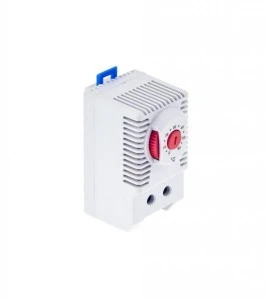 Termostat pojedynczy do grzałki, model (NC). Termostat wykorzystywany jest do kontrolowania temperatury wewnątrz obudów urządzeń elektrycznych. Modele (NC), z czerwonym pokrętłem regulacyjnym i stykiem zamkniętym, kontrolują pracę grzejnika lub sygnalizacji.
