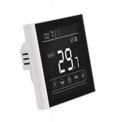 - Estetyczny termostat w kolorze białym z subtelnym podświetleniem. Urządzenie nie posada wbudowanego ekranu ciekłokrystalicznego lecz wybrane strefy z podświetleniem danych wartości. Dzięki czemu całość jest jednolita z hartowanym szkłem. W czasie spoczynku termostat wskazuje aktualną temperaturę oraz obniża jasność podświetlenia. Dzięki temu urządzeniu nie jesteśmy zmuszeni do korzystania z wielu aplikacji (zwłaszcza jednej dedykowanie np. tylko ogrzewaniu domu). Przy pomocy TUYA Smart i niezliczonej ilości kompatybilnych urządzeń możesz stale rozbudowywać automatykę swojego domu.
