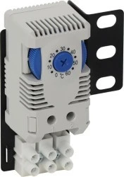 Nazwa: Termostat do wentylatora szaf RACK Przeznaczenie termostat RAT służy do sterowania wentylatorami typu RAW…, RAWP…w szafach RACK Zasilanie 230 V AC Wymiary montażowe 1U montaż doczołowy, w komplecie 2 śruby M6 + koszyki Wymiary 34 x 58 x 43 [+/-2 mm] Wykonanie biały, plastikowa Gwarancja 2 lata Uwagi - regulacja temperatury: 0°C÷60°C - styki przekaźnika: NO (250VAC/16A)