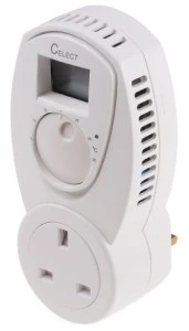 Wtyczka Therma niezprogramowana do sterowania temperaturą układu klimatyzacji. Ten termostat jest elektronicznym sterowaniem temperaturą zgodnym ze specyfikacją wtyczki brytyjskiej dla urządzeń chłodzących. Termostat posiada cyfrowy wyświetlacz, który pokazuje ustawioną temperaturę przez 5 sekund przed powrotem do wyświetlacza rzeczywistej temperatury pokojowej. Ten sterownik chłodzenia działa w temperaturach od -5°C do +25°C i jest idealny do sterowania wentylatorami lub urządzeniami chłodzącymi klimatyzacji, aby utrzymać temperaturę pokojową w ciepłych warunkach na wymaganym poziomie. Prosty wtyk, brak przewodów, precyzyjny cyfrowy wyświetlacz temperatury z łatwym wejściem analogowym i regulacją przy użyciu dużego pokrętła, aby uzyskać żądaną temperaturę. Zakres temperatur regulowany +5°C +35°C. Moc: 220 do 240V AC 50/60 Hz - 13(3) A maks. Odpowiednie do obciążenia 240v do 3Kw. Częstotliwość 50/60 Hz Przełączanie mechanizmu różnicowego około +0,5°C. Napięcie robocze 240VAC Stała czasowa Ok. 2 minuty Temperatura pracy: od 0 do -40°C