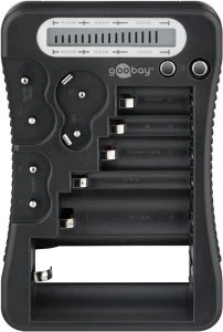 - Łatwy w użyciu tester baterii firmy Goobay do sprawdzania stanu naładowania wielu popularnych baterii i akumulatorów