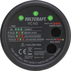 Gniazdo wtykowe jest sprawdzane pod kątem ewentualnych błędów w instalacji, takich jak wymiana żył i przerw. Wynik testu jest optyczny i akustyczny. Jeśli okablowanie jest w porządku, rozlega się ciągły sygnał dźwiękowy i wszystkie diody LED wskazują zielone światło.