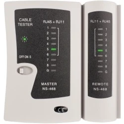 - Tester okablowania RJ45 (8 żył), RJ12 i RJ11 (6 i 4 żyły)