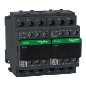 Stycznik nawrotny I=32A [AC-3], napięcie cewki 24 V DC. Zakres: TeSys - opis skrócony: LC2D - zastosowanie: obciążenie rezystancyjne, sterowanie silnikiem - Kategoria użytkowania: AC-1, AC-3 - prezentacja urządzenia: zamontowany z rewersyjną szyną zasiliającą - liczba biegunów: 3P - kombinacja styków: 3 NO - [Ue] znamionowe napięcie pracy: <= 300 V DC dla obwód mocy, <= 690 V AC 25...400 Hz dla obwód mocy - [Ie] znamionowy prąd pracy: 32 A (<= 60 °C) przy <= 440 V AC AC-3 dla obwód mocy, 50 A (<= 60 °C) przy <= 440 V AC AC-1 dla obwód mocy - moc silnika w kW: 15 kW przy 380...400 V AC 50/60 Hz, 15 kW przy 415...440 V AC 50/60 Hz, 18,5 kW przy 500 V AC 50/60 Hz, 18,5 kW przy 660...690 V AC 50/60 Hz, 7,5 kW przy 220...230 V AC 50/60 Hz - moc silnika w KM: 10 HP przy 230/240 V AC 50/60 Hz dla 3 fazy silniki, 2 HP przy 115 V AC 50/60 Hz dla 1 faza silniki, 20 HP przy 460/480 V AC 50/60 Hz dla 3 fazy silniki, 30 HP przy 575/600 V AC 50/60 Hz dla 3 fazy silniki, 5 HP przy 230/240 V AC 50/60 Hz dla 1 faza silniki, 7,5 HP przy 200/208 V AC 50/60 Hz dla 3 fazy silniki - wbudowane styki pomocnicze: 1 NO + 1 NC - kategoria przepięć: III - [Ith] znamionowy prąd cieplny: 10 A przy <= 60 °C dla obwód sygnalizacyjny, 50 A przy <= 60 °C dla obwód mocy - Irms znamionowy prąd załączany: 140 A AC dla obwód sygnalizacyjny zgodnie z IEC 60947-5-1, 250 A DC dla obwód sygnalizacyjny zgodnie z IEC 60947-5-1, 550 A przy 440 V dla obwód mocy zgodnie z IEC 60947 - [Icw] znamionowy wytrzymywany prąd krótkotrwały: 100 A 1 s obwód sygnalizacyjny, 120 A 500 ms obwód sygnalizacyjny, 138 A <= 40 °C 1 min. obwód mocy, 140 A 100 ms obwód sygnalizacyjny, 260 A <= 40 °C 10 s obwód mocy, 430 A <= 40 °C 1 s obwód mocy, 60 A <= 40 °C 10 min. obwód mocy - wartości znamionowe bezpiecznika skojarzonego: 10 A gG dla obwód sygnalizacyjny zgodnie z IEC 60947-5-1, 63 A gG przy <= 690 V koordynacja typ 1 dla obwód mocy, 63 A gG przy <= 690 V koordynacja typ 2 dla obwód mocy - [Ui] napięcie znamionowe izolacji: 600 V dla obwód mocy certyfikaty CSA, 600 V dla obwód mocy certyfikaty UL, 600 V dla obwód sygnalizacyjny certyfikaty CSA, 600 V dla obwód sygnalizacyjny certyfikaty UL, 690 V dla obwód mocy zgodnie z IEC 60947-4-1, 690 V dla obwód sygnalizacyjny zgodnie z IEC 60947-1 - trwałość elektryczna: 1,4 Mcykli 50 A AC-1 przy Ue <= 440 V, 1,65 Mcykli 32 A AC-3 przy Ue <= 440 V - strata mocy na biegun: 2 W AC-3, 5 W AC-1 - pokrywa ochronna: z - typ blokowania: mechaniczny - sposób montażu: płyta, szyna - normy: CSA C22.2 Nr 14, EN 60947-4-1, EN 60947-5-1, IEC 60947-4-1, IEC 60947-5-1, UL 508 - certyfikaty: BV, CCC, CSA, DNV, GL, GOST, LROS, RINA, UL - rodzaj zacisków: obwód mocy: zaciski śrubowe 1 kabel (kable) 1...10 mm2 - sztywność kabla: giętki - z końcówka przewodu, obwód mocy: zaciski śrubowe 1 kabel (kable) 1.5...10 mm2 - sztywność kabla: stały - bez końcówka przewodu, obwód mocy: zaciski śrubowe 1 kabel (kable) 2.5...10 mm2 - sztywność kabla: giętki - bez końcówka przewodu, obwód mocy: zaciski śrubowe 2 kabel (kable) 1.5...6 mm2 - sztywność kabla: giętki - z końcówka przewodu, obwód mocy: zaciski śrubowe 2 kabel (kable) 2.5...10 mm2 - sztywność kabla: giętki - bez końcówka przewodu, obwód mocy: zaciski śrubowe 2 kabel (kable) 2.5...10 mm2 - sztywność kabla: stały - bez końcówka przewodu, Obwody sterowania: zaciski śrubowe 1 kabel (kable) 1...4 mm2 - sztywność kabla: giętki - bez końcówka przewodu, Obwody sterowania: zaciski śrubowe 1 kabel (kable) 1...4 mm2 - sztywność kabla: giętki - z końcówka przewodu, Obwody sterowania: zaciski śrubowe 1 kabel (kable) 1...4 mm2 - sztywność kabla: stały - bez końcówka przewodu, Obwody sterowania: zaciski śrubowe 2 kabel (kable) 1...2.5 mm2 - sztywność kabla: giętki - z końcówka przewodu, Obwody sterowania: zaciski śrubowe 2 kabel (kable) 1...4 mm2 - sztywność kabla: giętki - bez końcówka przewodu, Obwody sterowania: zaciski śrubowe 2 kabel (kable) 1...4 mm2 - sztywność kabla: stały - bez końcówka przewodu - moment dokręcania: obwód mocy: 2.5 N.m - wł zaciski śrubowe - ze śrubokrętem Philips nr 2, obwód mocy: 2.5 N.m - wł zaciski śrubowe - ze śrubokrętem płaska O 6 mm, Obwody sterowania: 1.7 N.m - wł zaciski śrubowe - ze śrubokrętem Philips nr 2, Obwody sterowania: 1.7 N.m - wł zaciski śrubowe - ze śrubokrętem płaska O 6 mm - czas pracy: 16...24 ms otwieranie, 53.55...72.45 ms CLOSING - poziom bezpieczeństwa i niezawodności: B10d = 1369863 cykl contactor with nominal load zgodnie z EN/ISO 13849-1, B10d = 20000000 cykl contactor with mechanical load zgodnie z EN/ISO 13849-1 - wytrzymałość mechaniczna: 30 Mcykli. Zalety: Przejmij kontrolę nad integracją. Oprócz nowego wyglądu, stycznik TeSys d zapewnia szybką i prostą instalację, zachowując swoje kompaktowe wymiary 45 i 55mm (40 do 65A), a także zgodność z międzynarodowymi normami. Wersje od 40 do 65A są wyposażone w EverLink, nową opatentowaną technologię przyłączy, która zapewnia stałą jakość zacisku nawet w przypadku pełzania przewodów.... Zastosowanie: Przemysł, infrastruktura, budownictwo, itd.:, Styczniki TeSys d zostały zaprojektowane do pełnej integracji z systemami sterowania, Można je użyć do tworzenia rozruszników silników w aplikacji dowolnego typu....