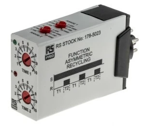 8-pinowa wtyczka asymetrycznego cyklicznego licznika czasu DPCO. Przełącznik służy do wyboru ośmiu różnych zakresów czasu od 1 s do 100 dni niezależnie w T1 i T2, dokładny wybór czasu w wybranym zakresie jest następnie dokonywany za pomocą dwóch potencjometrów procentowych. Zielona dioda LED zasilania świeci wraz z czerwoną diodą LED informującą o stanie wyjścia przekaźnika. Wszystkie szczegóły styku i informacje o funkcji są wyraźnie oznaczone po bokach obudowy. Synchronizacja jest inicjowana przez zasilanie styków 2 i 7. Synchronizacja rozpocznie wzbudzanie styków przekaźnika ″najpierw wstrzymać″, a następnie kilkakrotnie, aby odłączyć zasilanie styków przekaźnika. Cykl ten trwa tak długo, jak zasilanie jest podłączone. Niezależnie można wybrać okres czasu zarówno na zasilenie, jak i odżywienie (T1 i T2). Jeśli zasilanie zostanie odłączone w dowolnym punkcie cyklu, pozostały czas zostanie anulowany, a styki przekaźnika zostaną zasilone, zasilanie zostanie odłączone.8-pinowa wtyczka DPCO Wielonapięciowy 12-250 VAC/DC Zakres czasu od 1 s do 100 dni Modele T1 i T2 można regulować osobno Podwójny wskaźnik LED