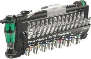Zestaw złożony z grzechotki, bitów, kluczy nasadowych i rękojeści z uchwytem do bitów umieszczony w małym pudełku. Idealny do różnorodnych zastosowań w każdej sytuacji. Wysokiej jakości rękojeść Kraftform z uchwytem do bitów, która zapewnia przyjemną i ergonomiczną pracę chroniąc dłoń przed powstawaniem pęcherzy i odcisków. Twarde strefy chwytu umożliwiają szybkie pokręcanie, miękkie strefy zapewniają przenoszenie wysokich momentów obrotowych. Grzechotka do szybkiego pokręcania w przypadku, gdy ze względu na ograniczoną ilość miejsca nie jest możliwe zastosowanie wkrętarki lub standardowych narzędzi ręcznych. Szybka zmiana kierunku pracy prawo-lewo przy pomocy przełącznika. Radełkowana główka grzechotki pozwala na szybkie pokręcanie kciukiem. Prosta obsługa nawet jedną ręką. Ergonomiczna konstrukcja główki i przełącznika dźwigniowego: geometria Kraftform z idealnie ukształtowanymi powierzchniami przylegania dla palców. Bezpośrednie mocowanie bitów w główce grzechotki umożliwia pracę na krótkich wysięgach. Niewielki kąt powrotu zapadki wynoszący 6°. Wytrzymałe wykonanie ze stali kutej matrycowo. Moment obrotowy powyżej 65 Nm. Uchwyt do bitów Rapidaptor z tulejką szybkoobrotową: stosowany jako przedłużka, do szybkiej wymiany bitów bez użycia dodatkowych narzędzi. Możliwość wymiany nawet najmniejszych bitów jedną ręką. Ciągliwo-twarde, do uniwersalnego zastosowania. Klucze nasadowe do obsługi ręcznej i maszynowej do prawie wszystkich zastosowań. System oznaczenia kolorystycznego kluczy według rozmiaru Take it easy ułatwiający i przyspieszający odnajdywanie właściwego narzędzia. Poręczny kształt umożliwiający chwytanie nawet zabrudzonymi smarem rękami. Z rowkiem ustalacza kulkowego. Do śrub i nakrętek z łbem sześciokątnym. Ze stali chromowo-wanadowej, chromowany matowo.