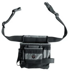 Uniwersalnie regulowana torba na pasek z wytrzymałego nylonu. Nylonowy pasek z 1 x etui na gwoździe, 1 x duża komora, 2 x duża i 2 x małe szlufki z gumką, 3 x wąskie kieszenie, 3 x przegródki na śrubokręt, 1 x szlufka na młotek, 1 x szlufka z karabińczykiem. Pas dla majsterkowiczów ma znacznie mniejszą wagę niż porównywalne artykuły ze skóry. Pas roboczy zapewnia miejsce na wiele narzędzi, a dodatkowe szlufki na inne akcesoria. Nylonowa torba na pasek jest wytrzymała, odporna na rozerwanie i łatwa do czyszczenia. Dzięki tym właściwościom torba jest wiernym towarzyszem nawet przy dużym obciążeniu.