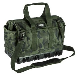 Torba narzędziowa CAMO NEO o wymiarach 40 x 22 x 33 cm. Wykonana z nylonu 600 D, gwarantującego długoletnią trwałość torby. Posiada usztywniane, wodoodporne dno chroniące zawartość podczas pracy w trudnych warunkach. Torba wyposażona jest w mocny uchwyt oraz pasek do przenoszenia.