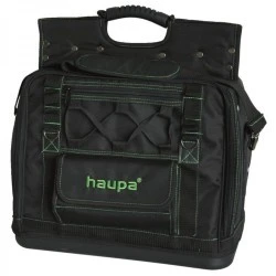 Torba narzędziowa nie tylko dla uczniów, z kieszeniami wewnątrz jak i na zewnątrz, dno wzmocnione gumą, podwójny szew krzyżowy zwiększający wytrzymałość, odpinany pasek naramienny, nastawny, 4 kieszenie zewnętrzne (różne wielkości), uchwyt na taśmę izolacyjną, 2 duże kieszenie z mniejszymi schowkami różnej wielkości, mieszczące np. segregator A4 lub laptop 15“ szlufki zewnętrzne na poziomicę, Materiał: bardzo mocny 1680D-Poliester, niewchłaniający wody i kurzu.