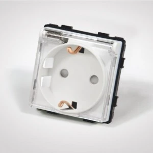 TouchMe Gniazdo bryzgoszczelne z/u schuko IP44 klapka przezroczysta białe TM6242W