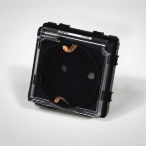 TouchMe Gniazdo bryzgoszczelne z/u schuko IP44 klapka przezroczysta czarne TM6242B