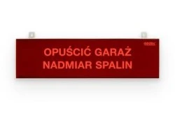 - Napis informacyjny: „OPUŚCIĆ GARAŻ NADMIAR SPALIN”