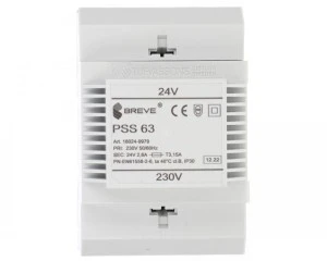 Jeden z transformatorów oferowanych przez Breve charakteryzuje się głębokością równą 72 mm. Podobną wartość osiąga szerokość artykułu. Wysokość ma za to wartość liczącą 110 mm. Urządzenie zostało wykonane w wersji modułowej, dzięki czemu jego montaż będzie łatwy i szybki. Transformator jest odporny na zwarcia. Wykonany został jako transformator bezpieczeństwa. Stopień ochrony IP30 informuje o stosunkowo niskiej ochronie przed wnikaniem czynników zewnętrznych. Woda i pyły mogłyby niekorzystnie wpłynąć na dalszą pracę aparatury. Klasa materiału izolacyjnego zgodnie z IEC 85 określona została jako klasa B.