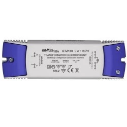 Transformator ETZ150 o mocy wyjściowej 150W, przeznaczony jest do współpracy z halogenowymi źródłami światła, zasilanymi napięciem 12V AC. Cechą charakterystyczną transformatora jest możliwość zasilania bardzo małych obciążeń od 0W. Urządzenie posiada szereg zabezpieczeń (zwarciowe, przeciążeniowe, termiczne) oraz opatentowanych rozwiązań, które zwiększają żywotność żarówek halogenowych współpracujących z transformatorami, oraz poprawiają bezpieczeństwo użytkowania samych urządzeń. ETZ150 przeznaczony jest do montażu natynkowego. Podłączenia dokonuje się za pomocą złącz śrubowych. Transformator może współpracować z inteligentnymi typami ściemniaczy oświetlenia.